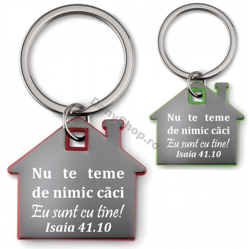 Breloc metal tip casuta, gravat cu mesajul: Nu te teme!