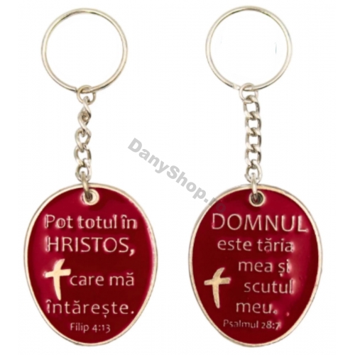 Breloc metalic, mesaj fata/verso: Pot totul in Hristos - Domnul este taria mea!