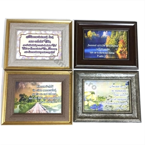 Tablou birou, prevazut cu talpa sustinere + suport pentru perete, 18x14 cm, imagini si mesaje biblice.